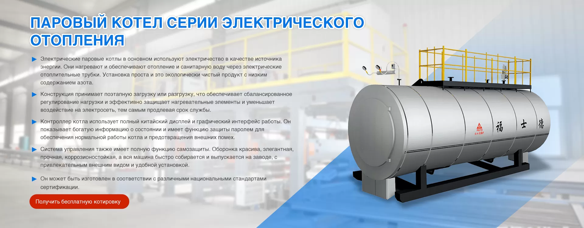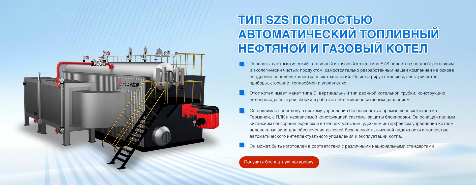 Firstd Boiler Co., Ltd. высокотехнологичное предприятие, специализирующееся на исследованиях, разработках и производстве энергосберегающих и экологически чистых котлов. Являясь ведущим брендом в области энергосберегающих и экологически безопасных котлов, Fu